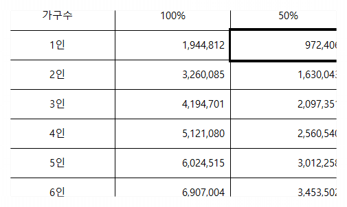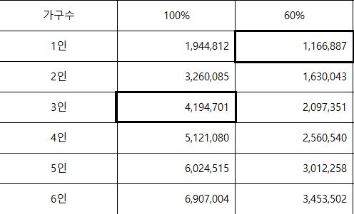 또한 기준 중위소득 금액은 2022년에는 2022년도 기준 중위소득, 2023년도에는 2023년도를기준으로 적용하며 재산가액 기준은 변동 없이 2023년에도 동일하게 적용됩니다