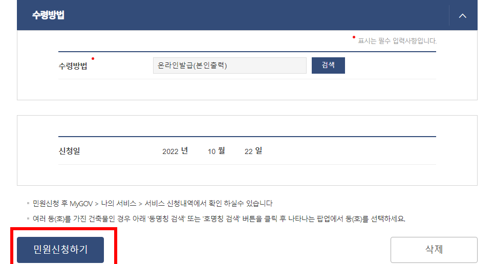 수령방법은 온라인 발급 출력이니 그대로 두고 넘어갑니다