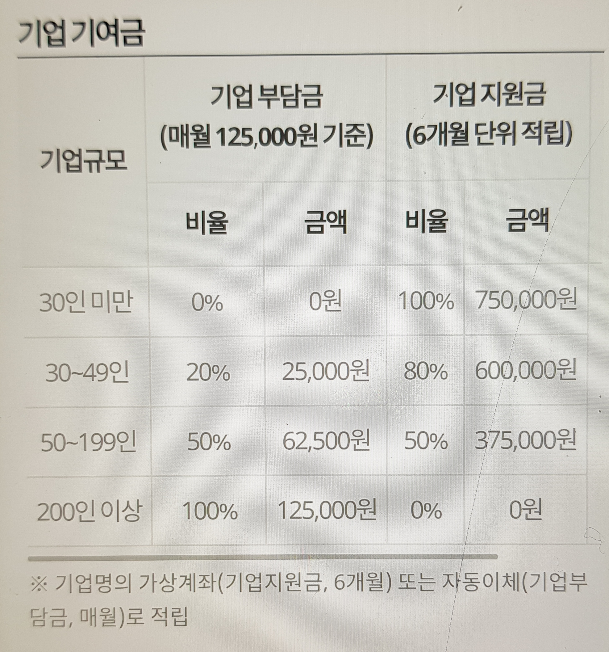 사업장 규모는 고용보험 피보험자 수(전년도 평균 고용보험 피보험자 수를 기준)에 따르며 지원금은 청년의 장기근속 지원을 위해 기업 기여금으로 차등 적립 지원합니다