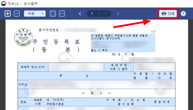 주민등록등본 인터넷 발급방법