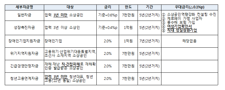일반자금 - 업력 3년 미만 소상공인