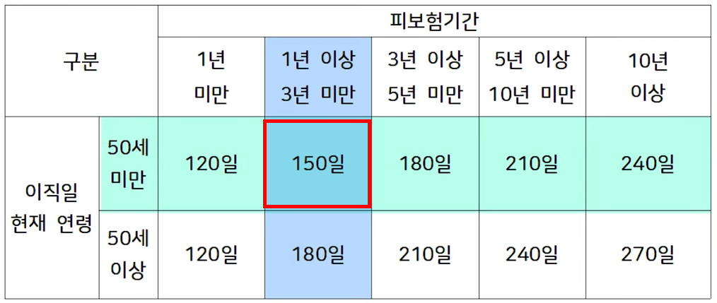 실업급여를 받을 수 있는 기간은 고용보험 가입 기간과 나이를 넣어서 계산을 합니다