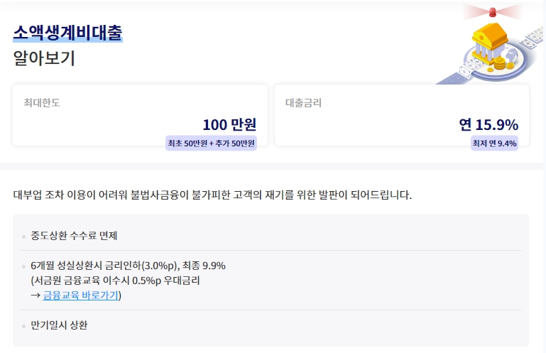 소액 생계비대출 신청 바로가기