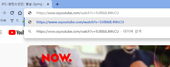 다음은 검색창 위에 링크사이트를 변형시키면 되는데 youtube 앞에만 ss를 넣어주면 됩니다