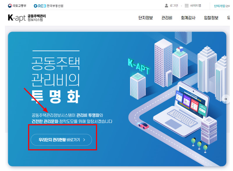 국토교통부와 한국부동산원에서 직접 관리 운영하고 있는 k-apt 공동주택 관리시스템에서는 공동주택 관리비의 투명화와 전국의 공동주택 관리비와 다른 정보들을 다 담고 있습니다